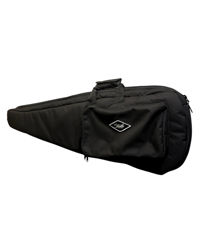 This Double Padded 1000 Denier Nylon Canvas Gig Bag comes in Black or Brown, with Duffle Style Strap handles and a front pocket (8.5" x 15"). Optional shoulder strap and clear vinyl ID window. This Gig Bag is made to fit any 22 fret Fender Stratocaster.